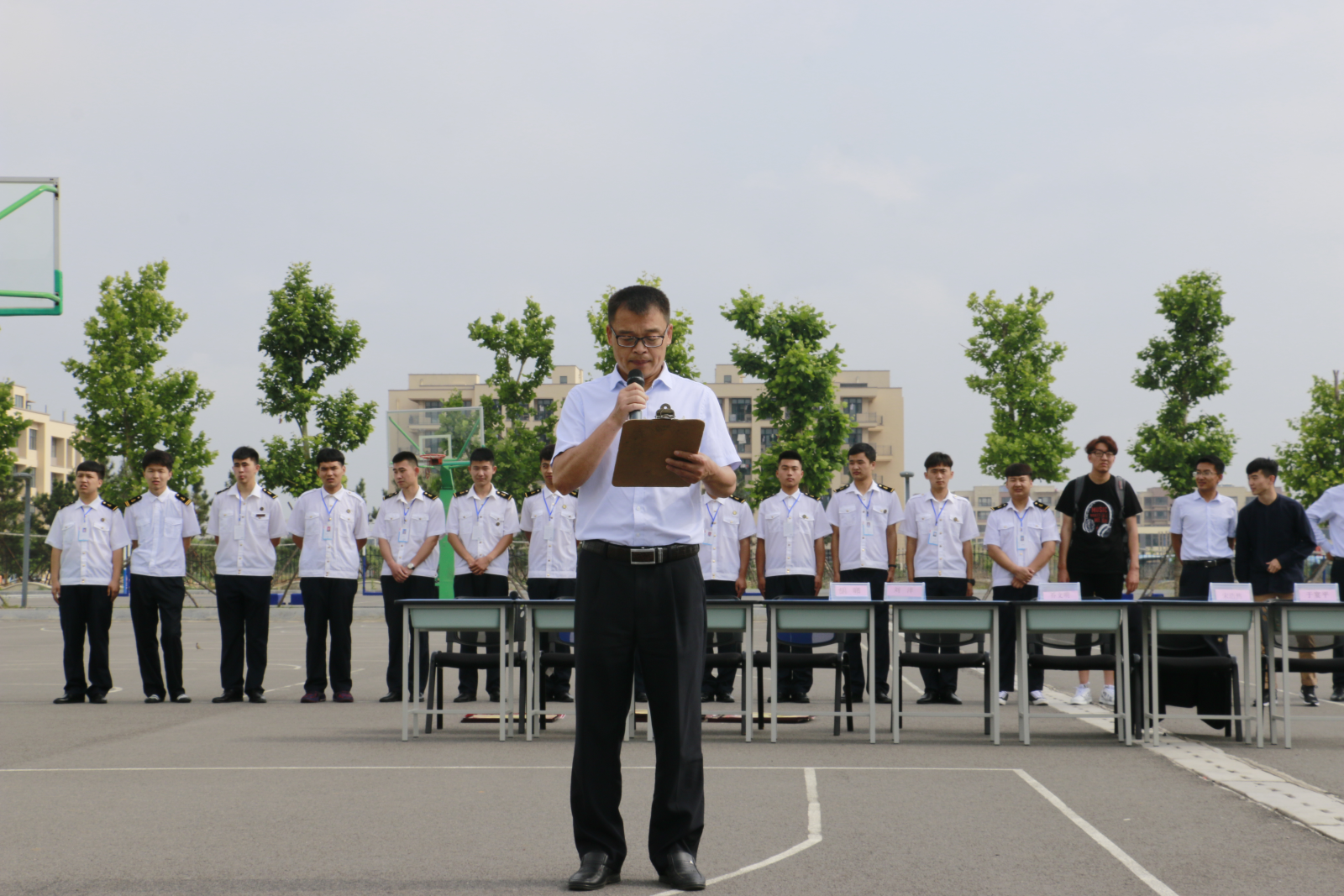 为了贯彻落实半军事管理制度,更好地展示学生的精神面貌,进一步培养学生的竞争意识、协作精神和集体荣誉感。经过航海学院半军事管理办公室的精心组织和全体学生的刻苦训练,6月15日早晨,航海学院在学校篮球场举办了隆重的队列会操比赛。航海学院全体辅导员和班主任老师出席了这次比赛。