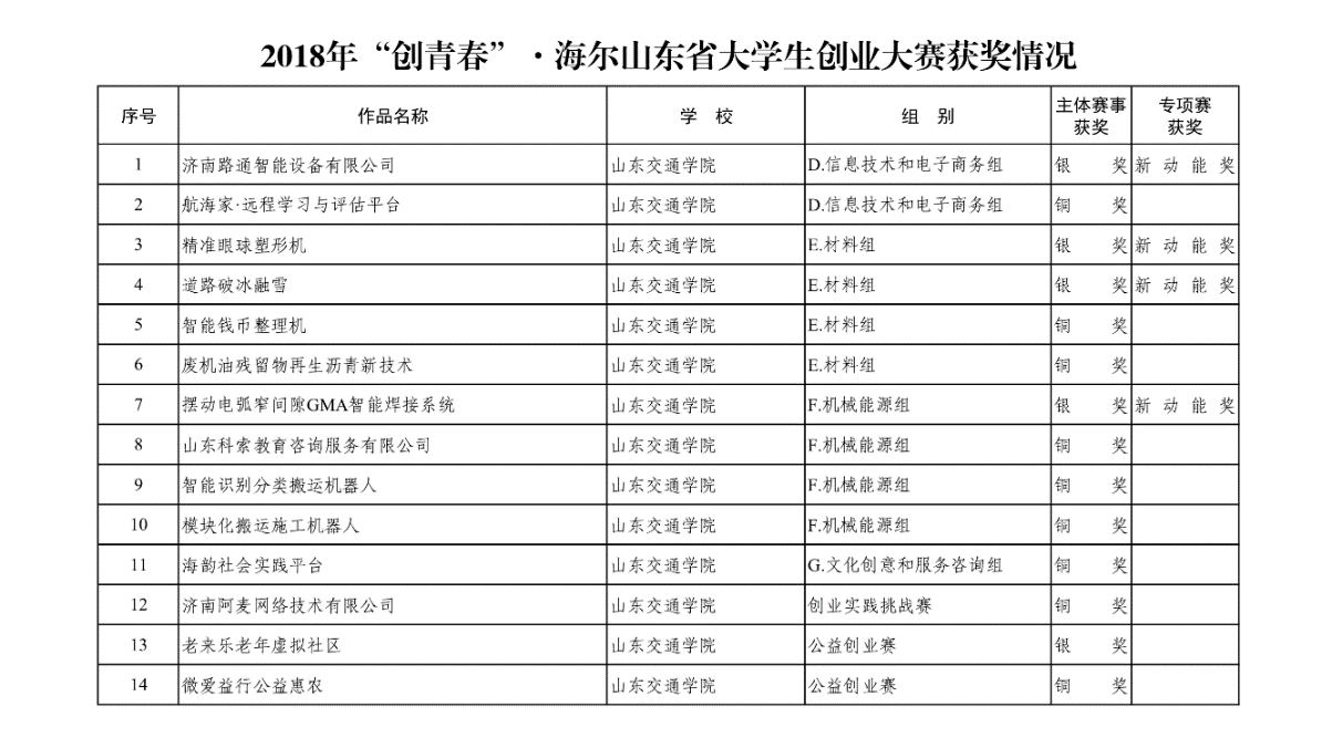 航海学院学生在2018年“创青春”·海尔山东省大学生创业大赛中喜获佳绩
