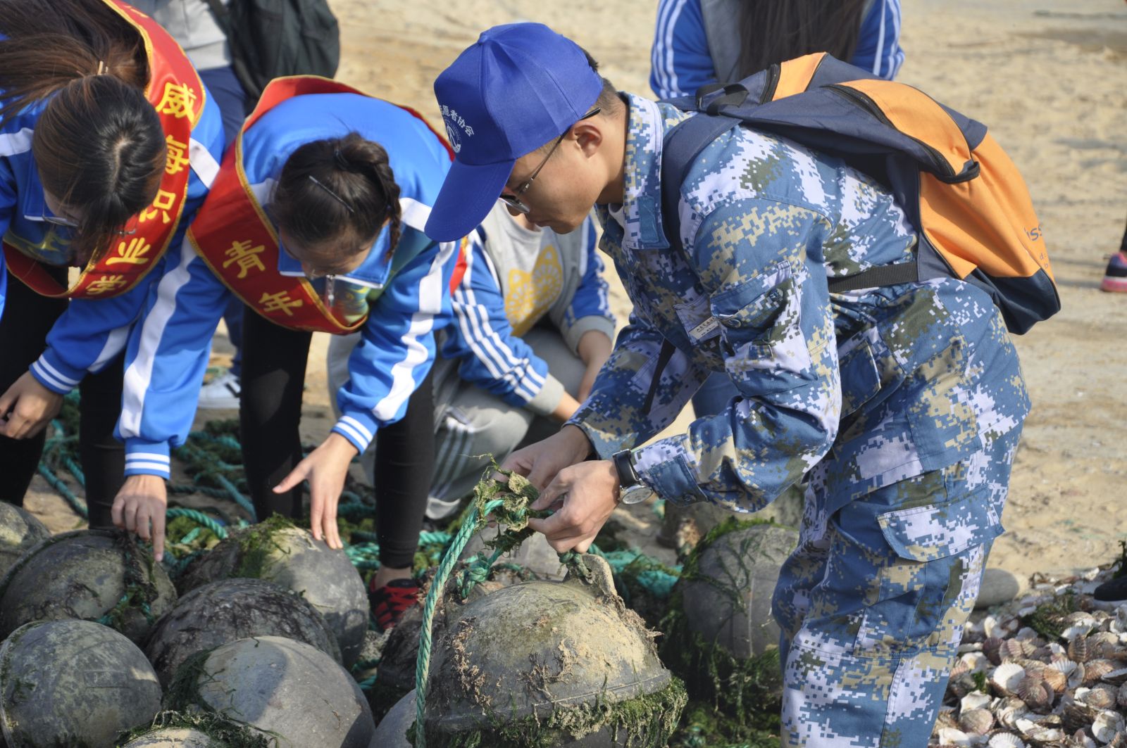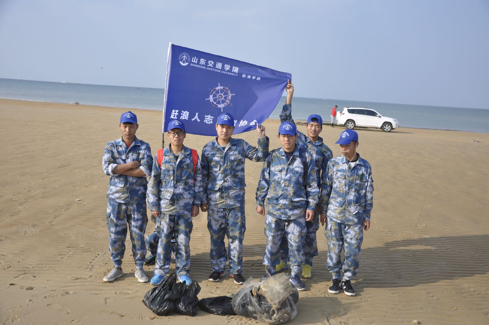 航海学院赶浪人志愿者协会承办,山东药品食品职业学院志愿者协会和威海职业学院国际商务系青年志愿者协会协办的大型公益活动于10月30日在北海海边正式开展,并取得了圆满成功。