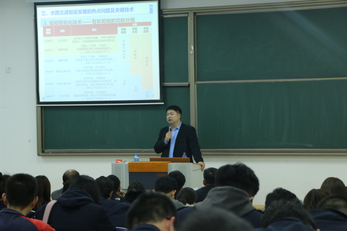 为更好的了解水路交通运输的发展前景,10月30日下午,航海学院邀请武汉理工大学智能交通系统研究中心主任、国家水运安全工程技术研究中心副主任张迪做客学院“航海大讲堂”,以“水路交通的绿色和智能技术发展趋势”为题作了一场生动的学术讲座,航海学院教师和2017级学生参加。