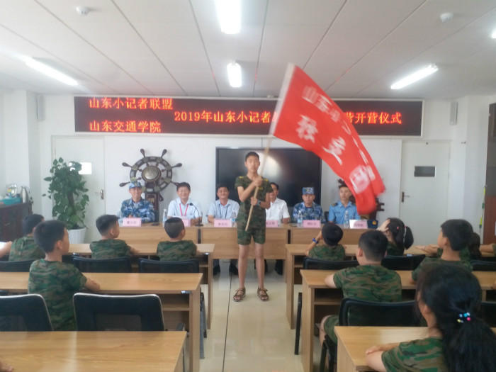 航海学院联合主办,航海学院党总支书记李西田、院长李光正,山东小记者联盟秘书长张义强,以及夏令营全体教官和所有参营人员共同参加了开营仪式。