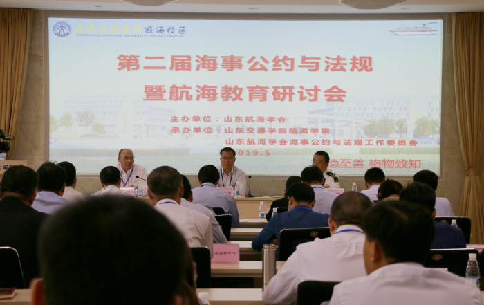航海学院承办的第二届海事公约与法规暨航海教育研讨会在我校威海校区隆重举行。学校副院长、威海校区党委书记、管委会主任李贞涛、山东航海学会秘书长郭鲁海,威海海事局副局长黄斌出席会议。省内外专家、学会会员单位、学校相关部门负责人参加会议。