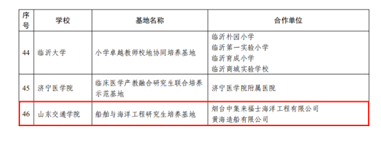 牵头,联合烟台中集来福士海洋工程有限公司和黄海造船有限公司共同建设。基地的建立将充分发挥其带头作用,以打造应用技术型人才作为核心理念,多层次、多角度产教融合平台作为载体,立足于专业化、深层次的校地资源,努力打造成制度规范灵活、理论实践贯通、专业特色突出的研究生培养基地。