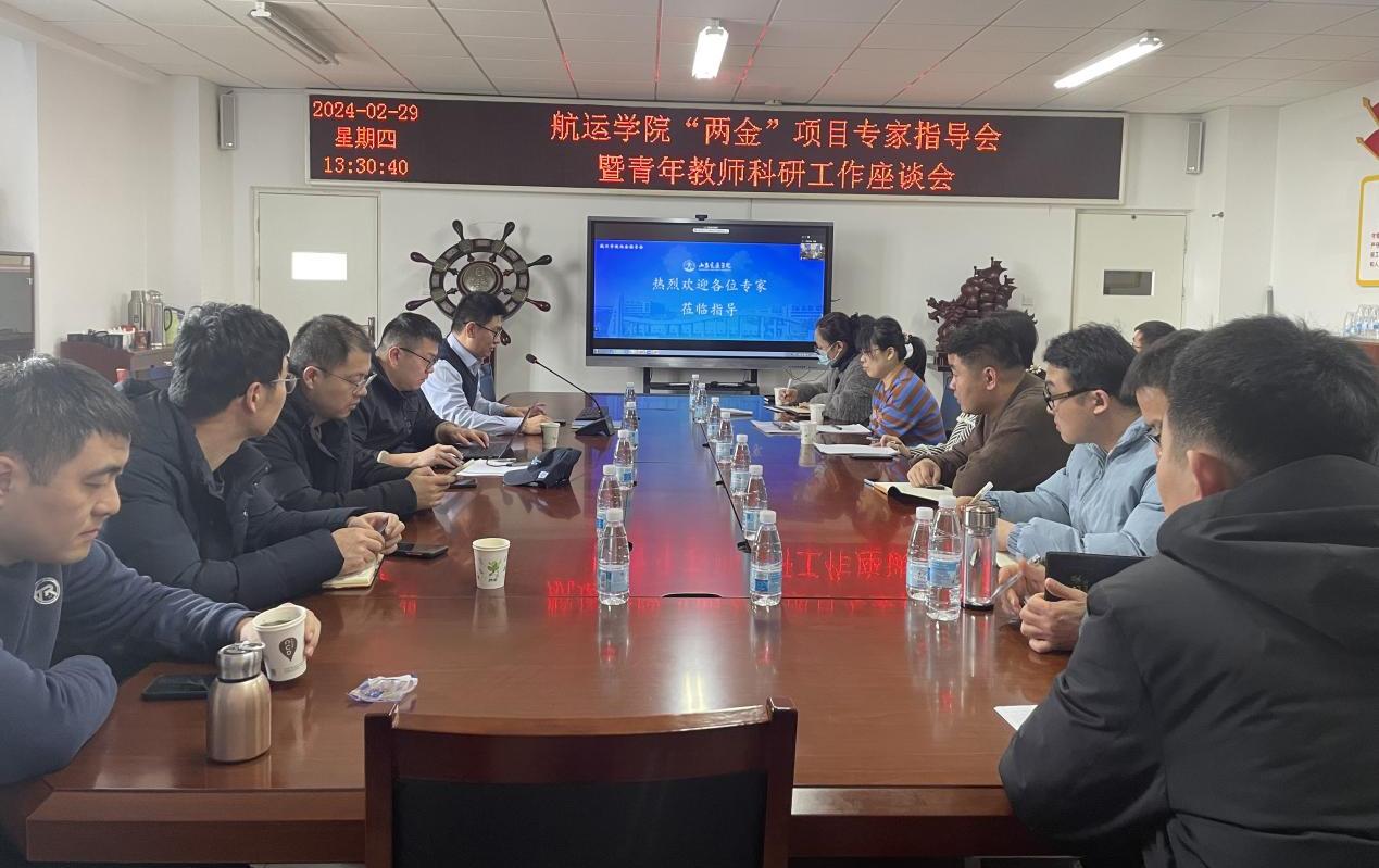 在教学楼B424召开“两金”项目专家指导会暨青年教师科研工作座谈会。大连海事大学教授张国庆,航空学院教授何为凯,鲁东大学副教授胡鑫,色花堂