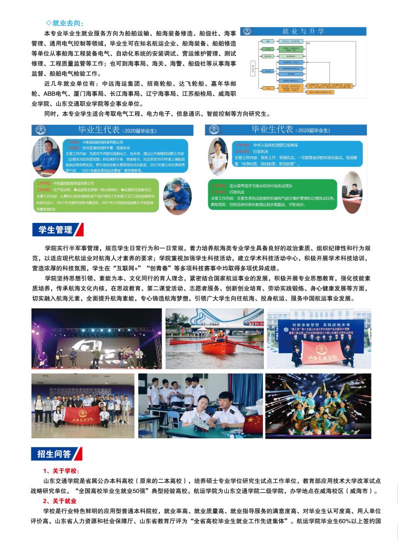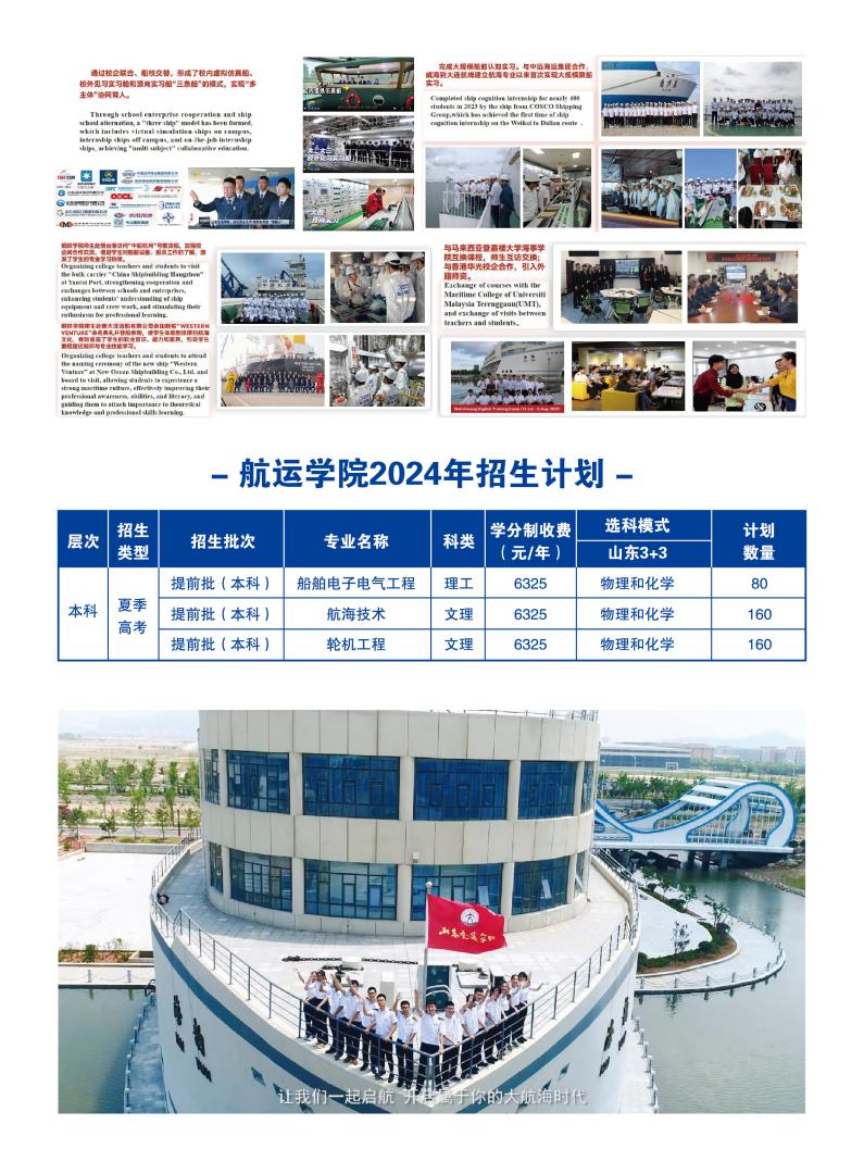 在威海校区,致力于培养符合国家教育方针和相关国际公约及国家法规要求,满足社会需要,有成长力的高质量航运人才,开设航海技术、轮机工程、船舶电子电气工程3个本科专业,具有一流的师资队伍、设施设备和管理水平,被誉为“山东省航海家摇篮”。