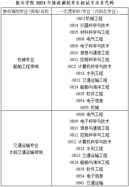 上述专项招生计划培养环节与普通计划完全相同,仅要求研究生二年级实践单位为联合培养基地单位,对毕业和就业无影响。同批次调剂复试时,机械(船舶工程领域)总分排名后4名和交通运输(水路交通运输领域)总分排名后4名为专项招生计划名额。