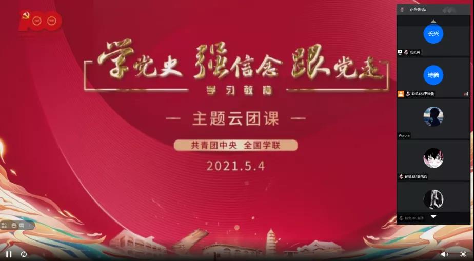 通过组织各团支部观看线上直播和腾讯会议组织统一观看的方式共同收看由共青团中央、全国学联主办的《学党史 强信念 跟党走---主题云团课》,腾讯会议由色花堂