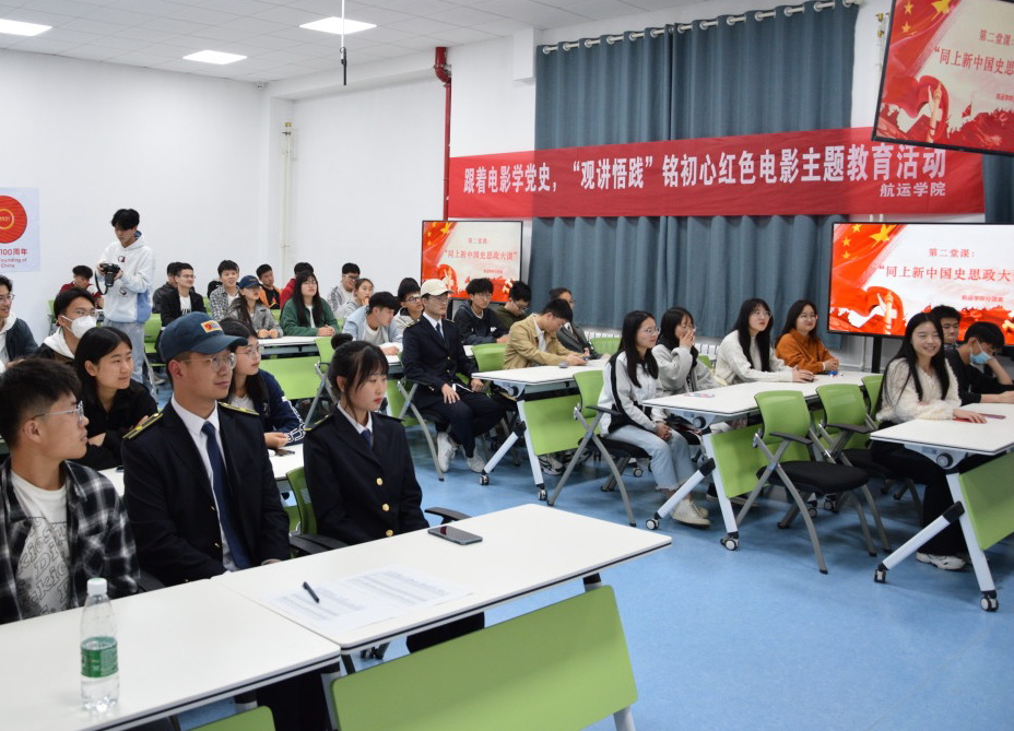 师生通过线上线下途径共同收看由社科司与人民网联合举办“同上四史思政大课”第二课新中国史大课。