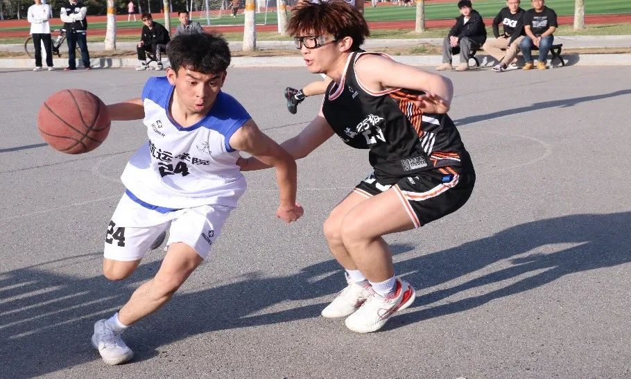 篮球场上,比赛高潮不断、跌宕起伏,球员们展现出高超的篮球技艺和顽强的拼搏精神,场场对决精彩纷呈、扣人心弦。赛场上的每一次投篮、每一次抢断、每一次盖帽都令人热血沸腾,充分展现了当代大学生的青春活力。现场氛围紧张而热烈,观众们热情高涨,积极为支持的队伍加油助威。