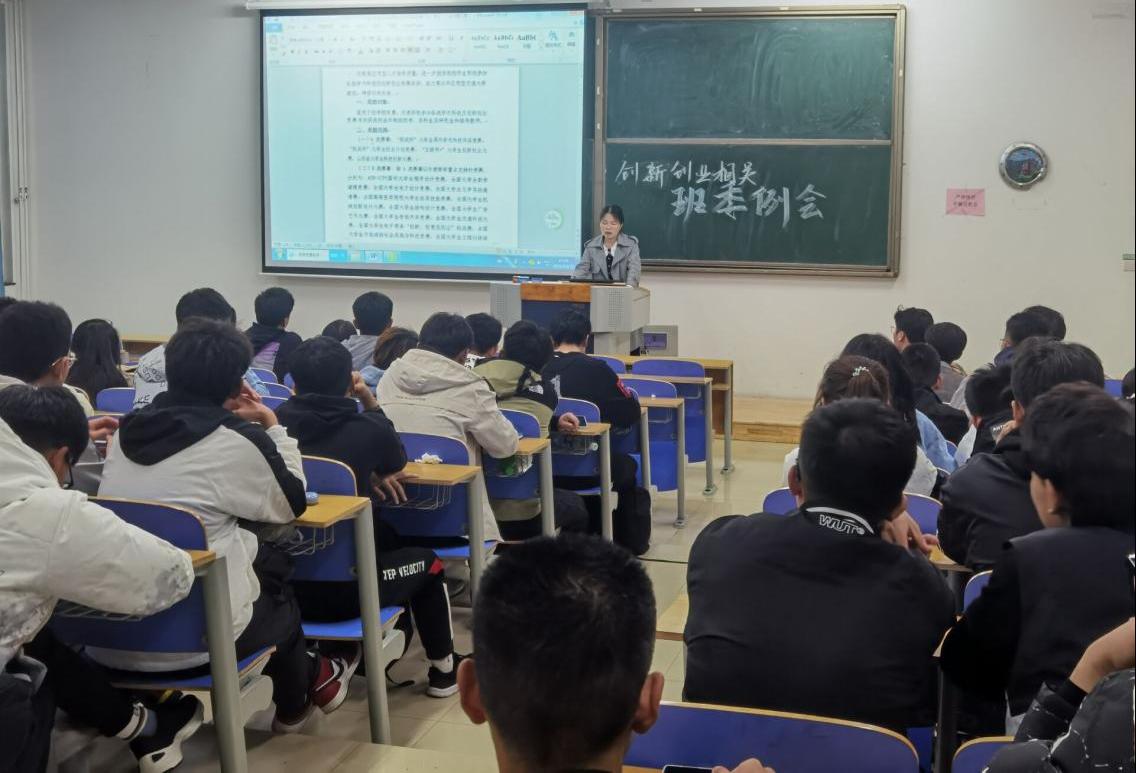 随后,陈娟娟老师讲解了创新创业大赛赛事类别、学校对各类竞赛的奖励办法,她着重强调了要提高A、B类赛事学生参与度,并对学院下一阶段创新创业工作做出了相应规划。