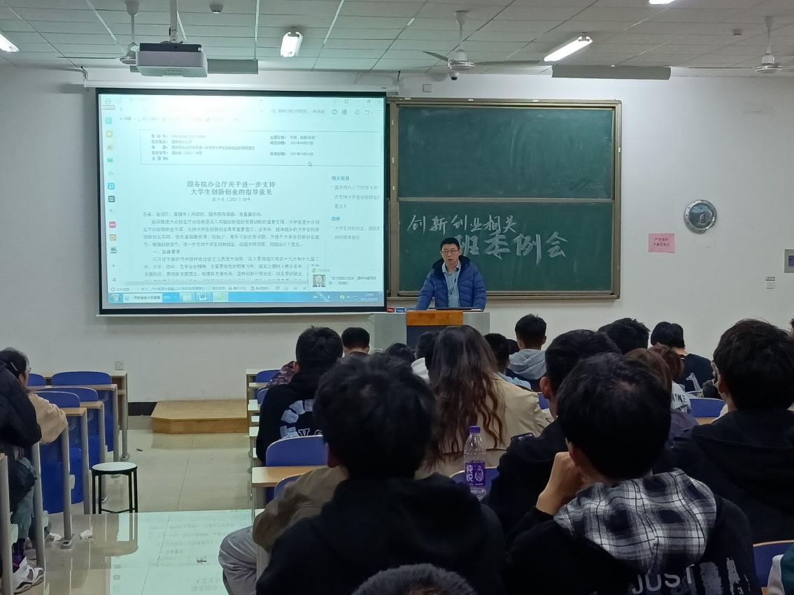 活动伊始,周靖老师着重强调国家对大学生创新创业的支持与鼓励,并解读了大学生创新创业的相关政策。他表示,学院会大力支持同学们参与双创竞赛,希望学生干部能够积极带领班级同学参与竞赛,争取在今后的工作中有所突破。