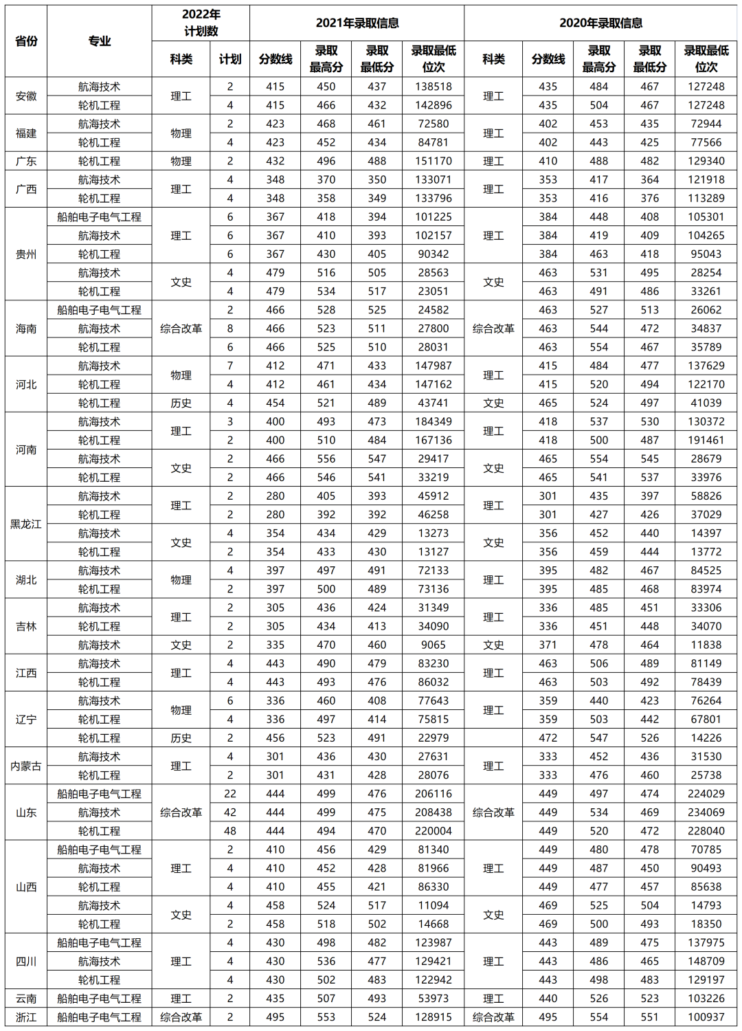 6.航海类专业招生计划及往年录取情况