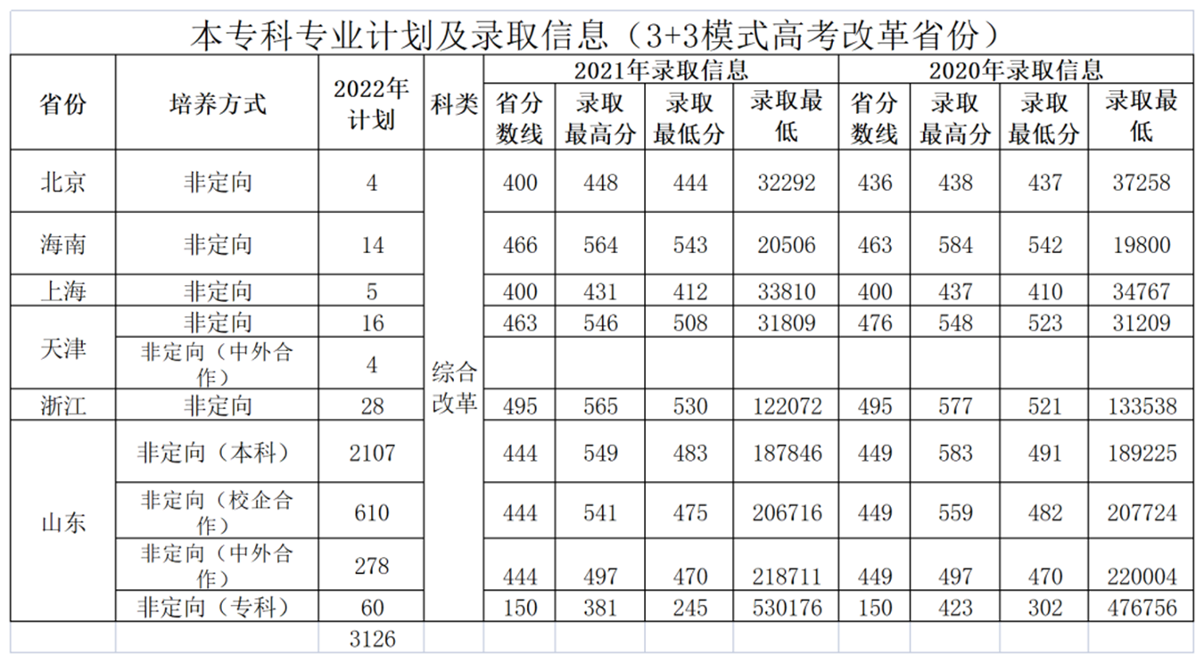 2.山东省分批次往年招生录取情况