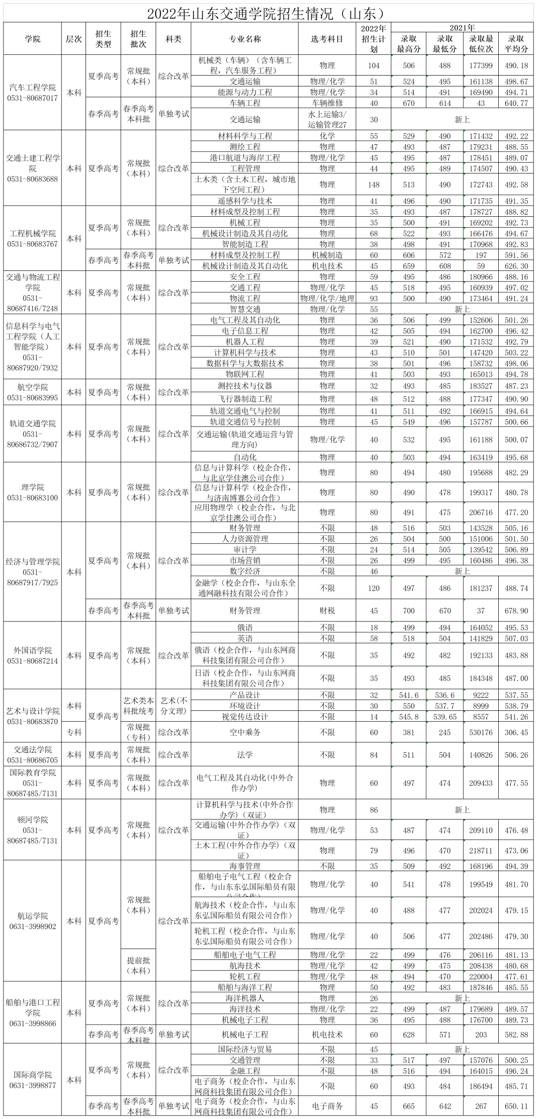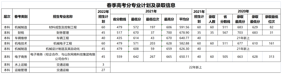 1.山东省分专业招生计划及往年录取情况
