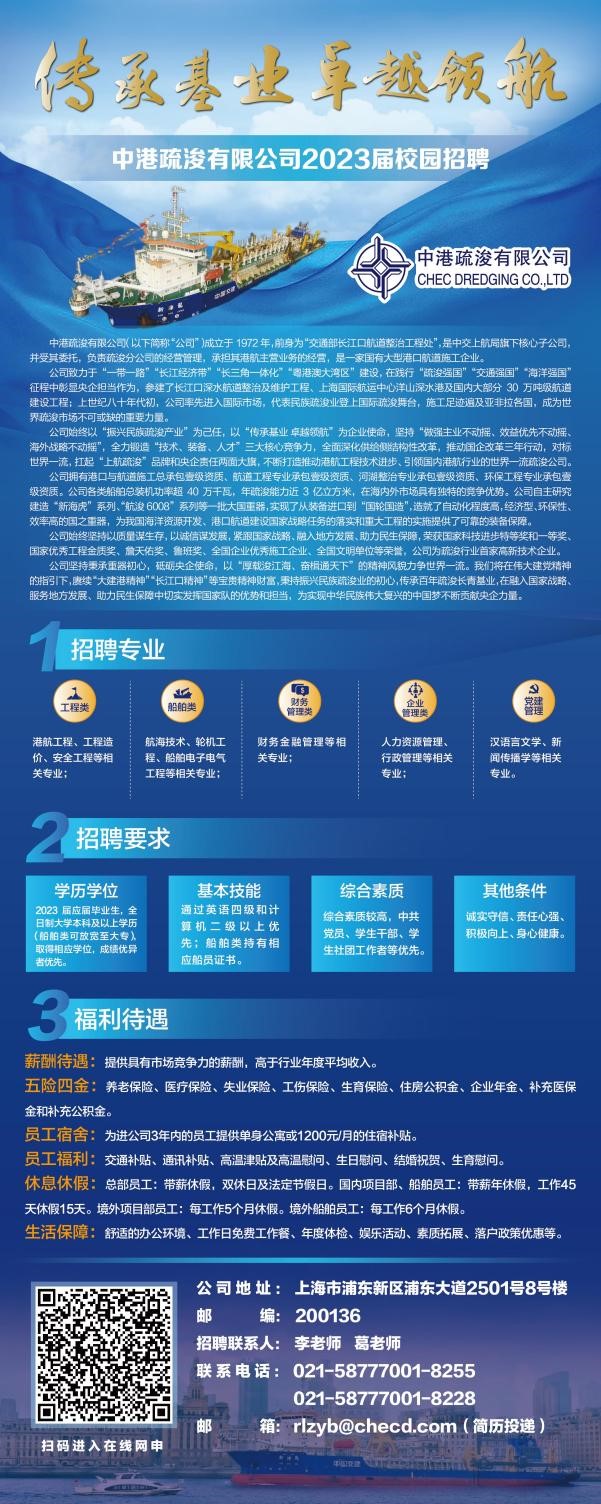 通过腾讯会议召开中港疏浚有限公司线上招聘宣讲会。本次线上宣讲会主要就企业概况、招聘专业、招聘要求等几个方面展开,为2023届毕业生提供咨询和选择。