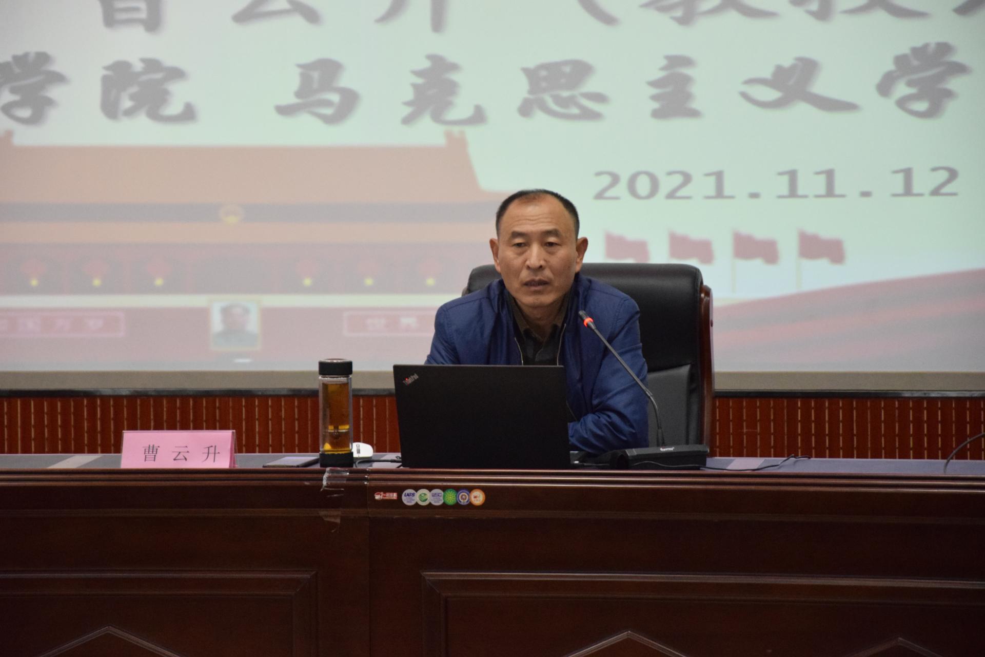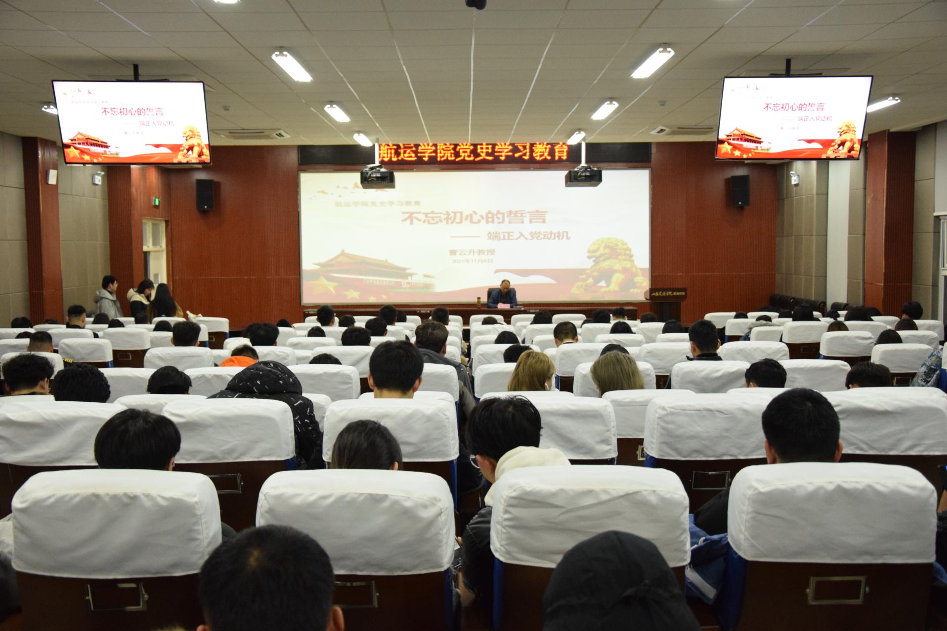 11月9日,色花堂 党委在威海校区第二报告厅C101举办党史学习教育专题党课,邀请我校马克思主义学院教授曹云升讲授题为《不忘初心的誓言——端正入党动机》的党课。色花堂 全体学生党员及辅导员参加了本次党课,色花堂 党委副书记杜强主持会议。