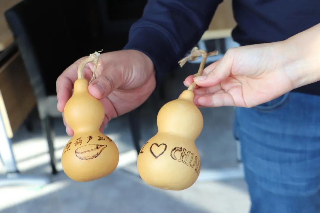 葫芦谐音福禄,拥有葫芦,即拥有福禄;赠送他人葫芦, 即赠送福禄。葫芦烙画又称烫画、火笔画,是国家级非物质文化遗产。老师们首先挑选了自己中意的葫芦,静静地聆听手工老师讲解葫芦烙画起源、烙画工具使用,随即在葫芦上打好草稿纸,专注地用电烙铁在葫芦上熨出烙痕作画……烙画与葫芦融为一体能永久保存、收藏,艺术和收藏价值很高。手托自己亲手制作的烙画葫芦,大家都欣喜不已。有的老师独具匠心,还做出了建党百年的图案,颇具纪念意义。