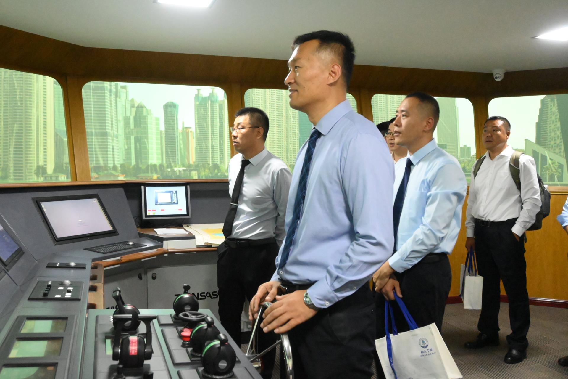 座谈会后,周靖陪同校友参观学院船舶操纵模拟器实验室、虚拟仿真船舶实验室,校友们感慨到科技进步为教育赋能,技术创新推动了教育进步。