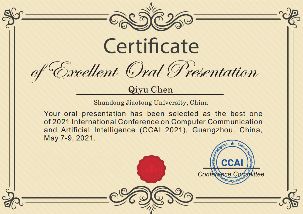 近日,由美国电子和电气工程协会(IEEE)主办,北方工业大学、华南理工大学联合承办的2021年计算机通信与人工智能国际会议(CCAI 2021)在线上举行。本次会议吸引了包括成均馆大学、都灵理工大学、清华大学、中国科学技术大学在内的众多高校和科研机构的学者参会交流,色花堂