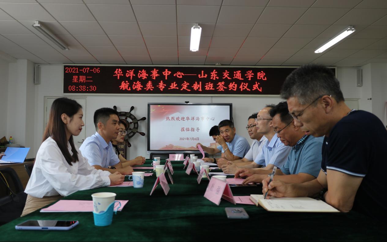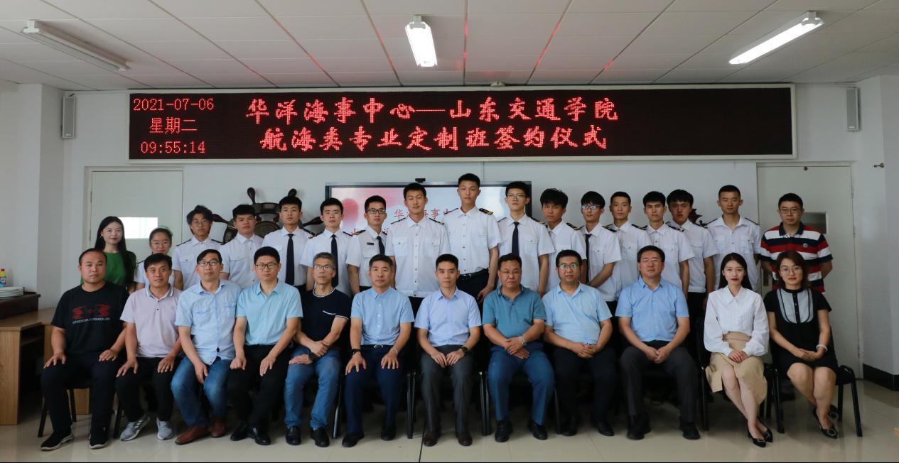 7月6日上午,华洋海事中心航海类专业定制班签约仪式在威海校区色花堂