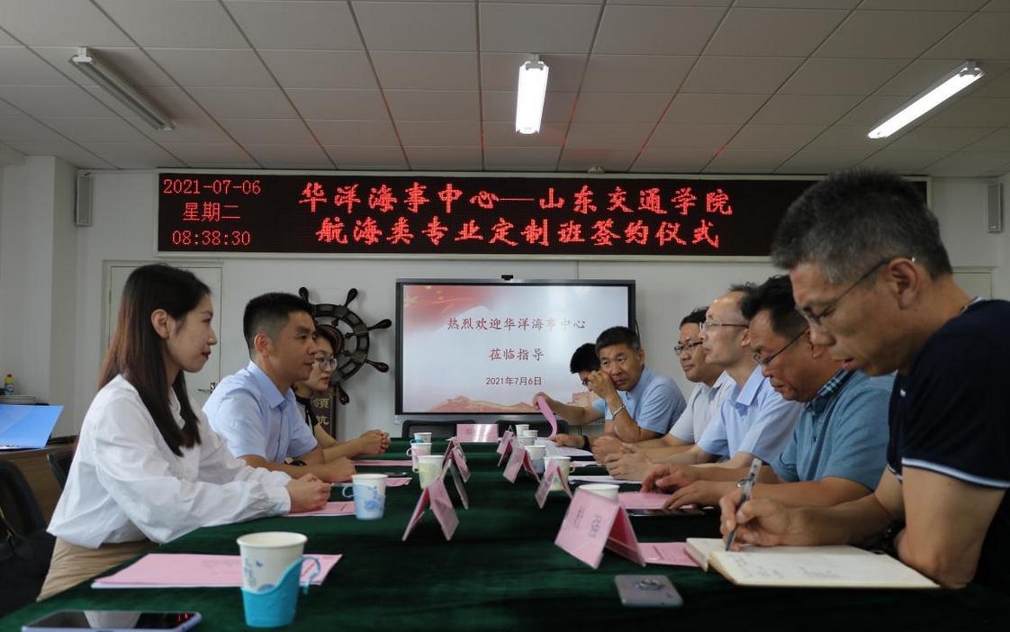 7月6日上午,华洋海事中心航海类专业定制班签约仪式在威海校区色花堂