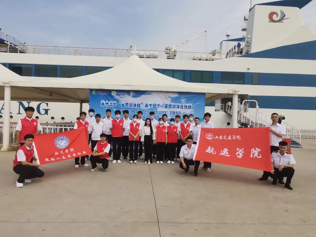 新时代文明实践志愿服务队携手威海市华益公益服务中心、威海海事局刘公岛海事处、烟台航标处成山头航标管理站、烟台航标处威海航标管理站、山东侨乡国际旅游有限公司共同开展“爱护碧水蓝天、守护纯净威海”海洋日环保主题活动。