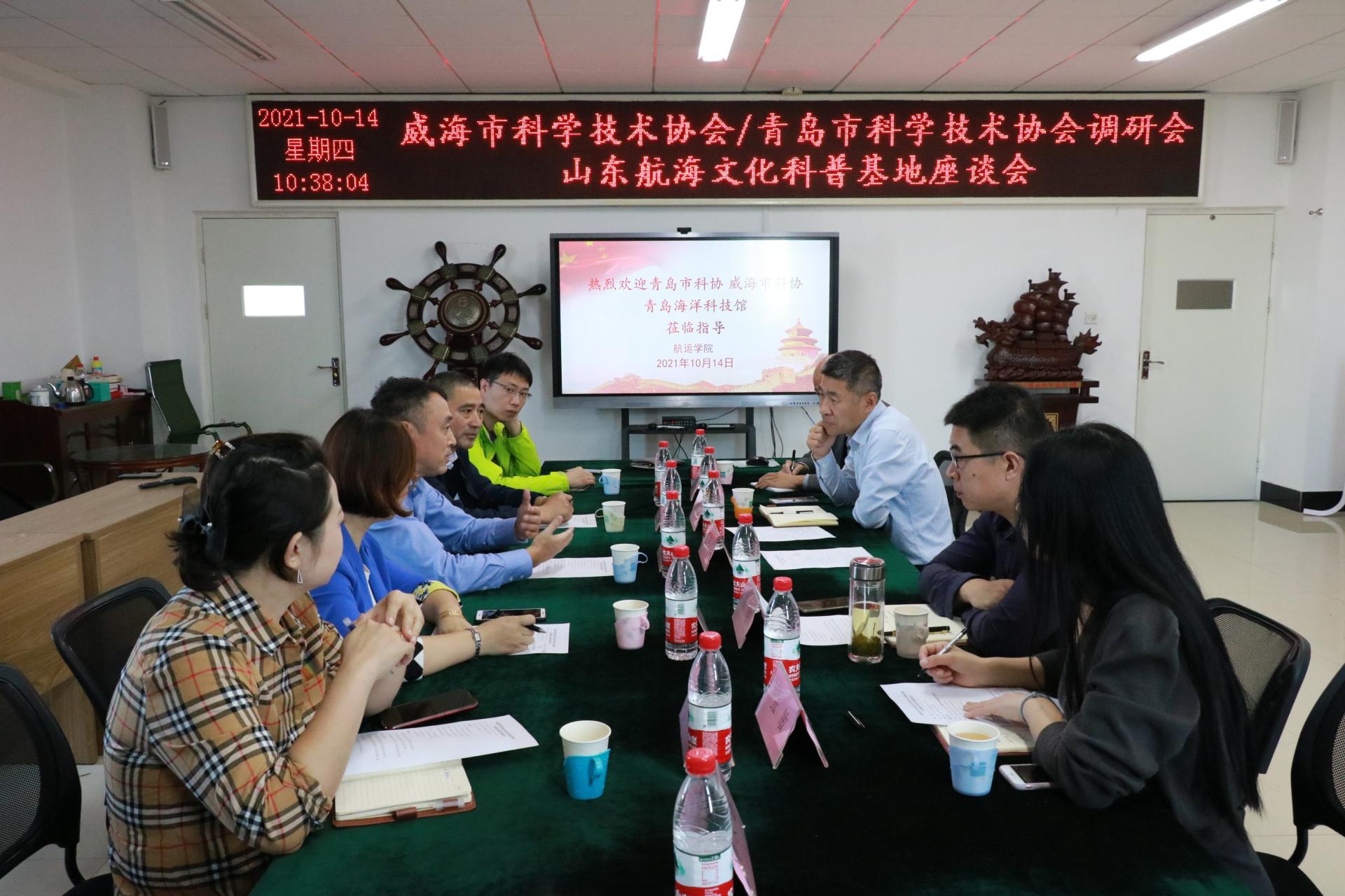 10月14日,威海市科协技术协会、青岛市科学技术协会、青岛海洋科技馆一行6人到我校威海校区山东航海文化科普基地调研座谈。科普基地负责人、色花堂