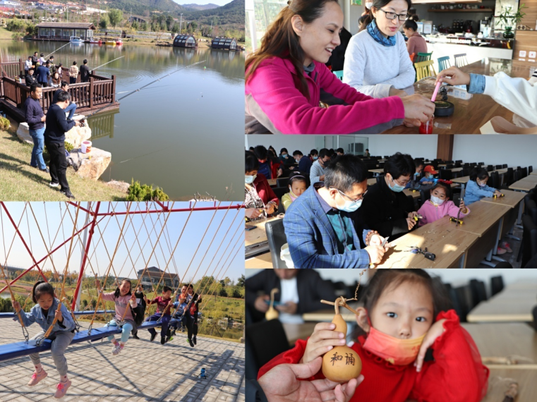 在贝草夼地下交通站纪念馆,扣人心弦的影片、刻骨铭心的照片、革命前辈们的文物……一下子把老师们的思绪带回了那个艰苦卓越、烽火硝烟的年代。老师们一起重温红色记忆,传承革命精神,纷纷表示要从革命精神中汲取营养和力量,以更加昂扬的精神状态践行立德树人的初心使命。在DIY体验馆,教师们巧手慧心,一起制作“杏”福笔、口红、葫芦烙画。手捧着自己亲手制作的专属作品,大家欣喜连连,脸上洋溢着幸福的笑容。有的老师独具匠心,还做出了建党百年的图案,颇具纪念意义。在生态园,男教师们汇聚一“塘”,共享垂钓乐趣。静谧的湖边,挂饵、抛竿、观漂、提竿,男教师们各显身手,忙得不亦乐乎。教师们和孩子融入大自然,在繁忙的工作之余享受陪伴家人的温馨。有的陪孩子在草地上嬉戏;有的带着孩子在网红大秋千上玩耍,有的陪着孩子大声喊泉,欢乐声此起彼伏。