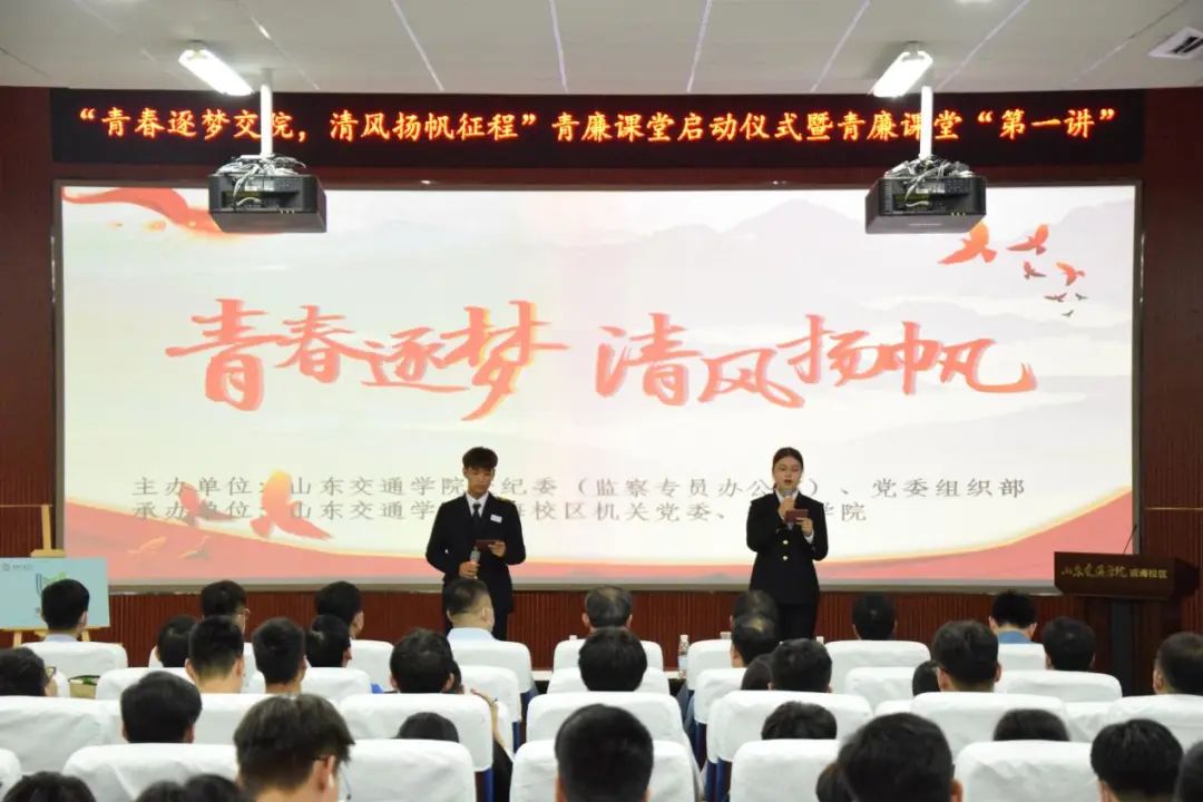 党委联合承办的“青春逐梦交院,清风扬帆征程”青廉课堂启动仪式暨青廉课堂“第一讲”活动于9月28日下午在威海校区第二报告厅举行。学校纪委副书记程伟渊、纪委(监察专员办公室)正处级纪检员兼威海校区纪检监察办公室主任张国勇、威海校区机关党委书记闫栋、色花堂