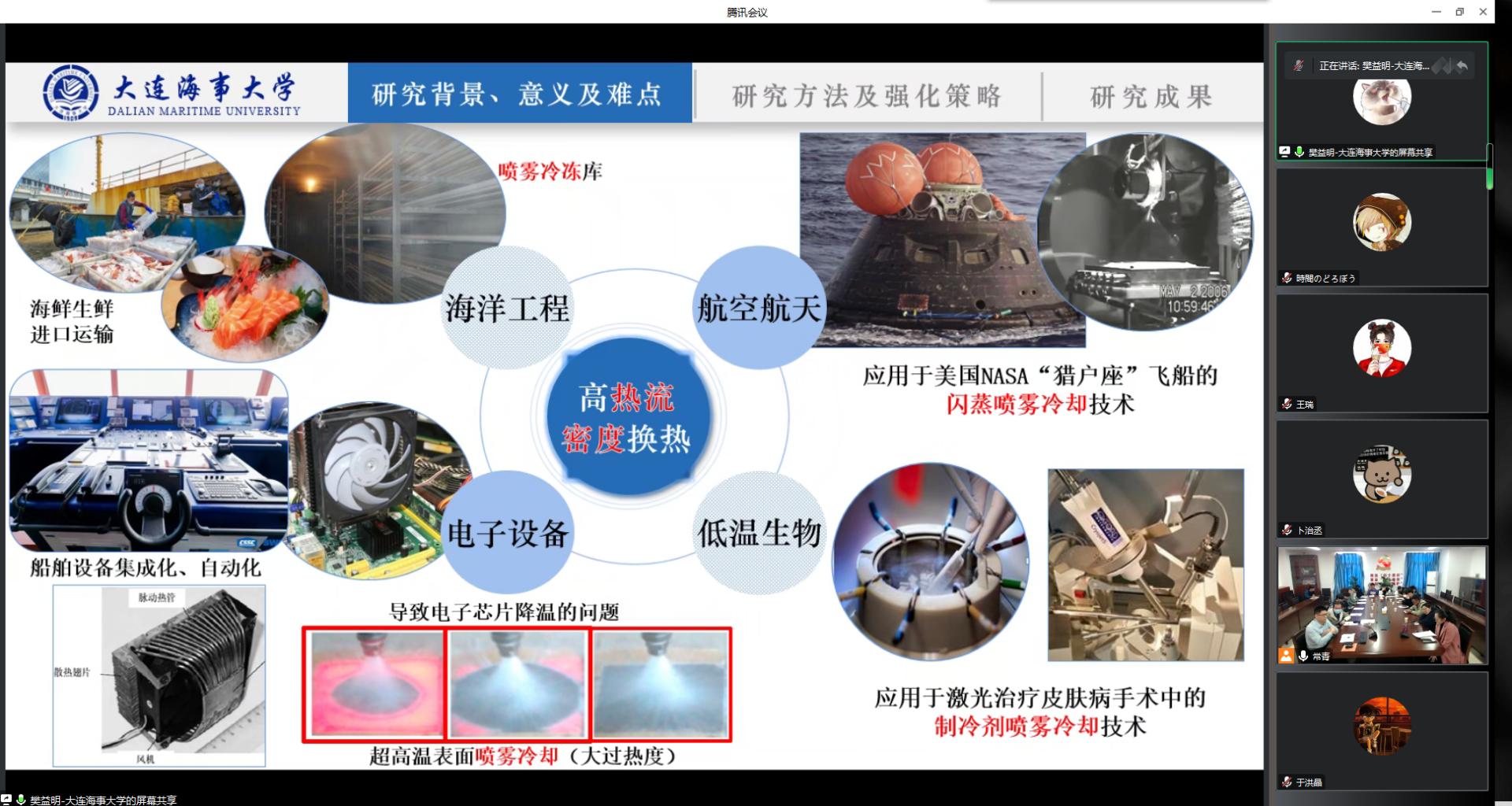 论坛邀请李继强等6位专家、学者以专题报告的形式,分享海洋交通运输方面的最新研究成果。李纪强、张圣东、王瑞、于洪晶、樊益明分别作《无人机/船协同路径跟踪控制》、《船舶推进轴系特性及润滑技术研究》、《可用于海上目标识别的无人机载激光LiDAR感知技术研究》、《船舶尾气氧化脱硝机理的相关研究》、《喷雾冷却传热机理及其强化策略》的专题报告,分享各自领域的最新研究技术。最后,张强围绕交通运输行业的智能应用技术和科技创新成果,作《考虑航海实践的智能航运技术研究》的专题报告。期间,参会专家、学者进行了互动交流。