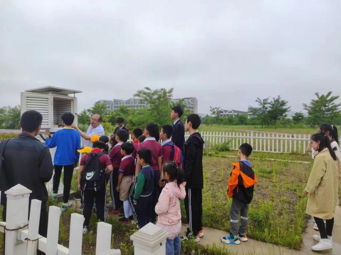 教师带领三方党支部党员教师、家长及学生代表参观威海校区气象观测站、天象馆、航海模拟器及涉海体育器材。