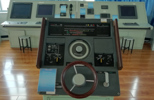 轮机模拟器实验室。轮机模拟器实验室的轮机模拟器具有国际先进水平,国内领先地位仿真教学设备,DMS-2017A型轮机全任务轮机模拟器参照《CCS钢制海船建造与入级规范》的AUTO-0标准设计,以30万吨级超大型油轮为母型船,母型船采用先进的VLCC船型、智能电控柴油机为主推进动力装置,船体总长330米,宽60米,型宽27.2米,总载重296659吨,船舶时速15节。